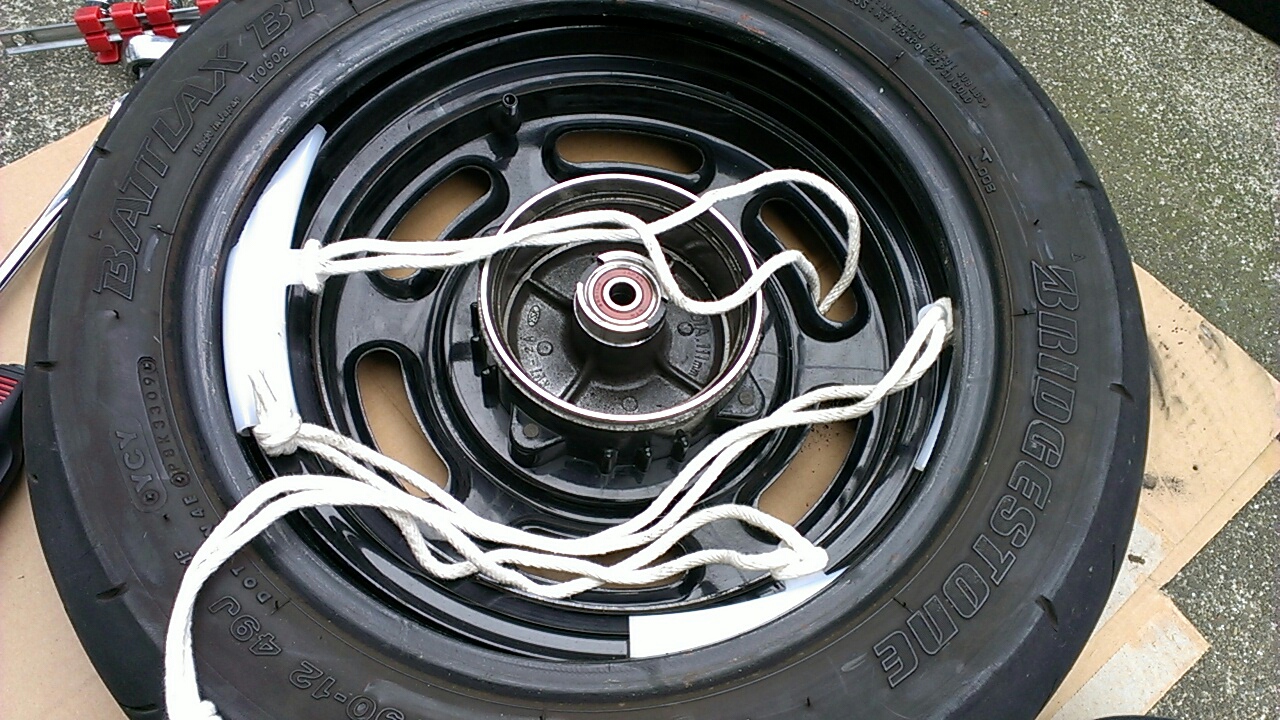 あとは虫ゴム入れずにコンプレッサーでエアーを入れてビード上げパンパンです〜。