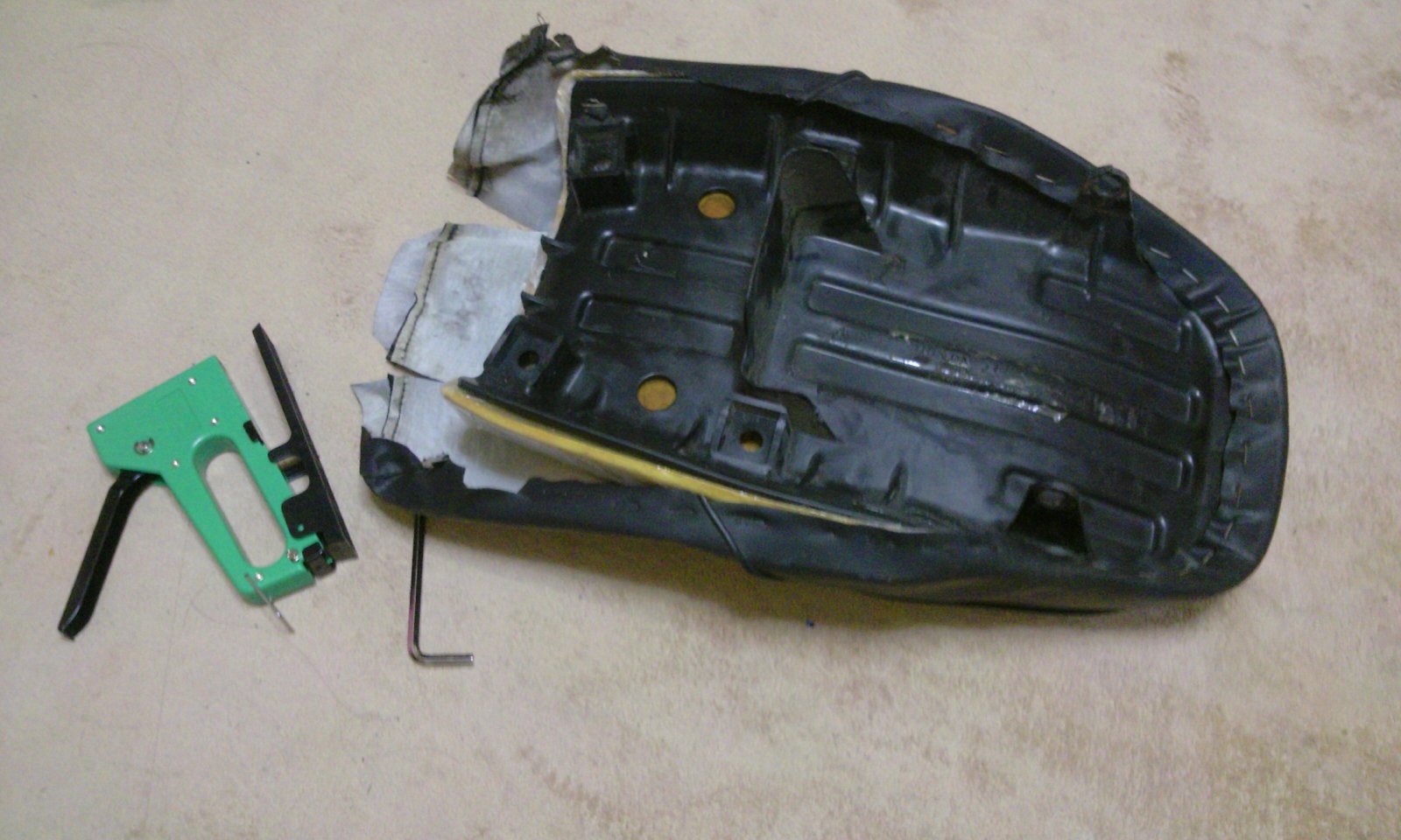 安物のタッカーなので、打ち付け力が少し弱くて針がキチンと刺さるかを心配しましたたが、シートベースに厚みが増しているところ以外は打てたのでOK です。