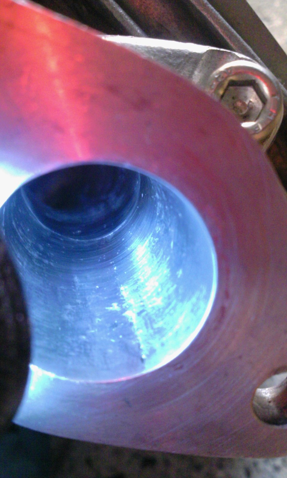 R角度もきつく、混合気が剥離するのでは?と思い、大きなRになるように少し削って修正。