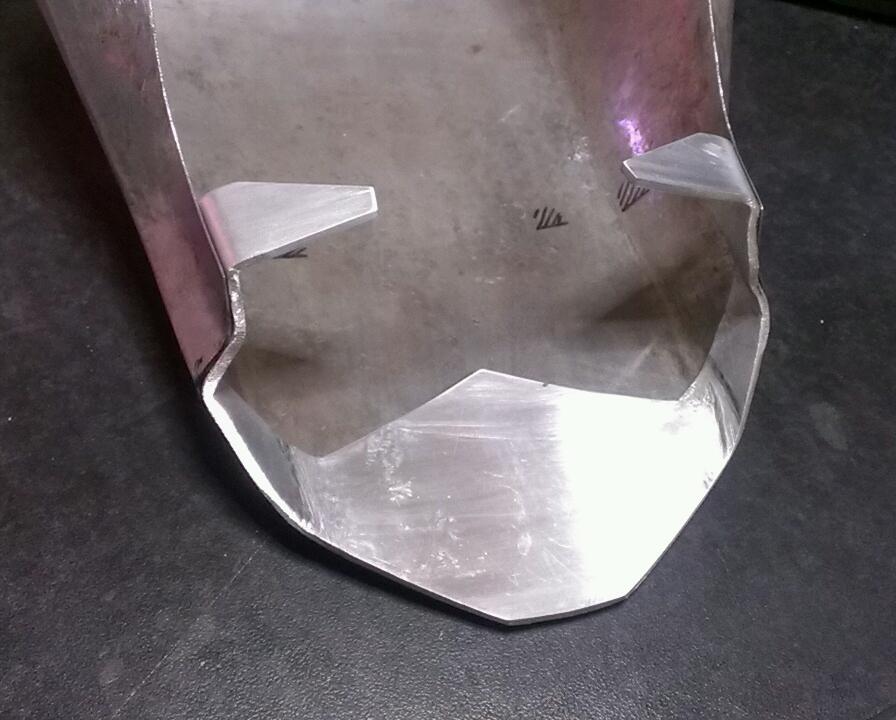 2〜3mmのアルミ板を使い、内側に合うように軽く叩いて整形、それを接着剤でくっつける予定。