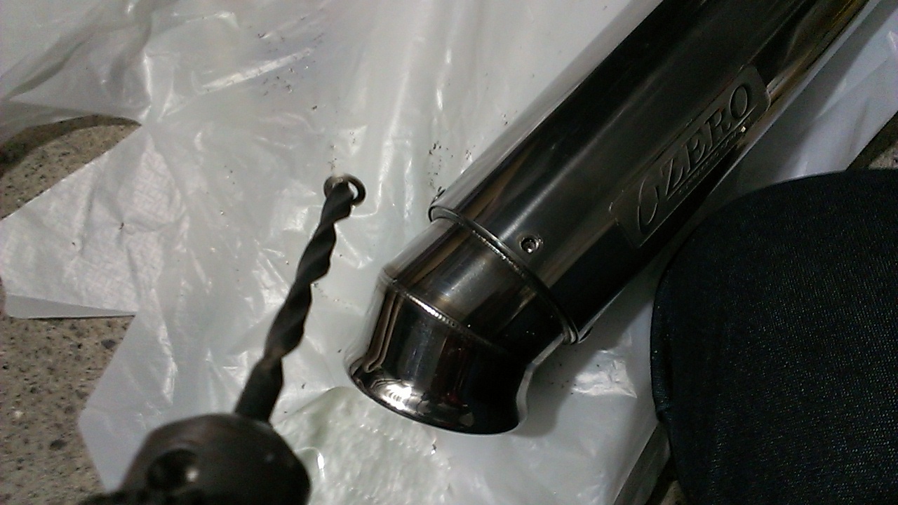簡単に言うと、サイレンサーボディがステンレスならリベット穴より1mmオーバーサイズで、アルミボディならジャストサイズでリベットの頭を飛ばしてやります。