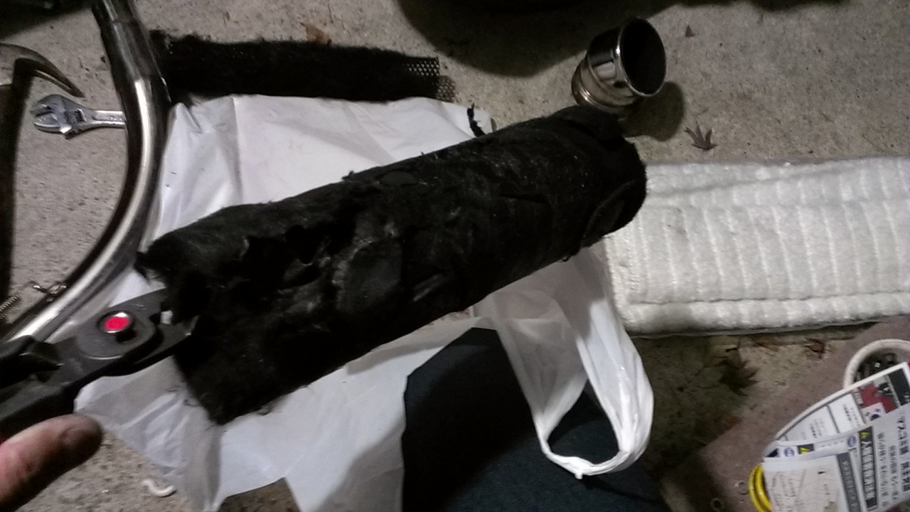 中身はこんな感じで、奥に見えるのがエキゾーストパイプから繋がってきた部分。