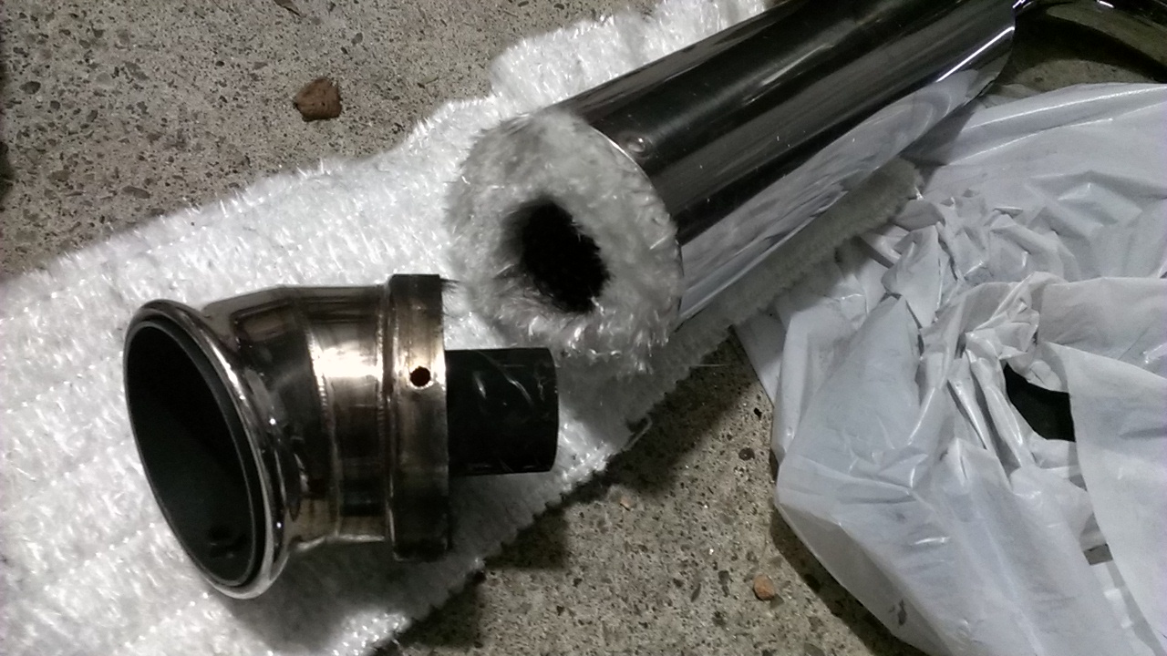 先日の本庄ツーリング前日の突貫作業ではめたエンドバッフルが入りきらないまま、抜けなくなってしまいました。