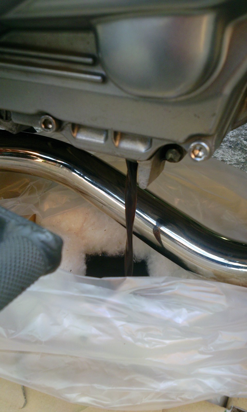 アルミシールワッシャーを新品にしてドレンを締めたら、ヘッドカバーを開けて上からドバドバっと。