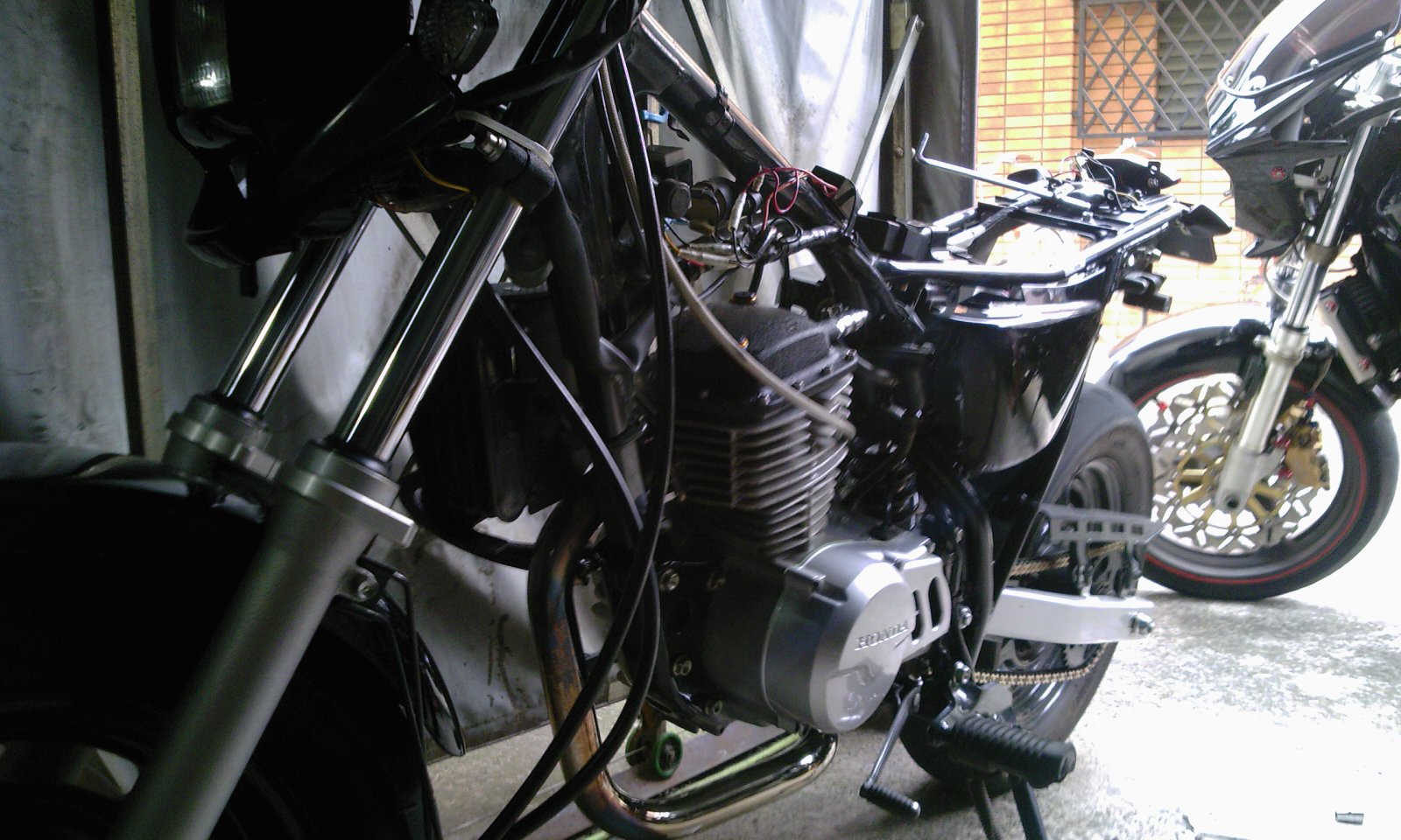 フォークインナーがクロームなので、色合いはそのままでもおかしくはないんですがコートもかかっていないポリッシュでアルミサビが出るのはちょっとね(笑)