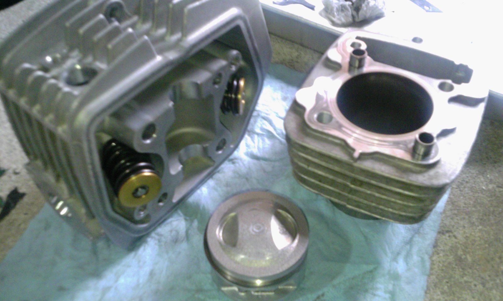 ホーニングすれば使えますがピストンやリングは失われているので、今回は現在使用のクリッピングポイント製のボア&ピストンで、リングとシリンダーヘッドの交換にします。