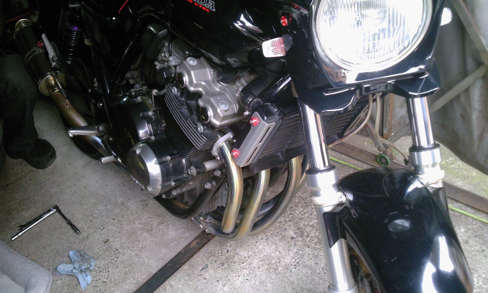 今日はそまゴン氏のCB400SFのマフラー交換。
