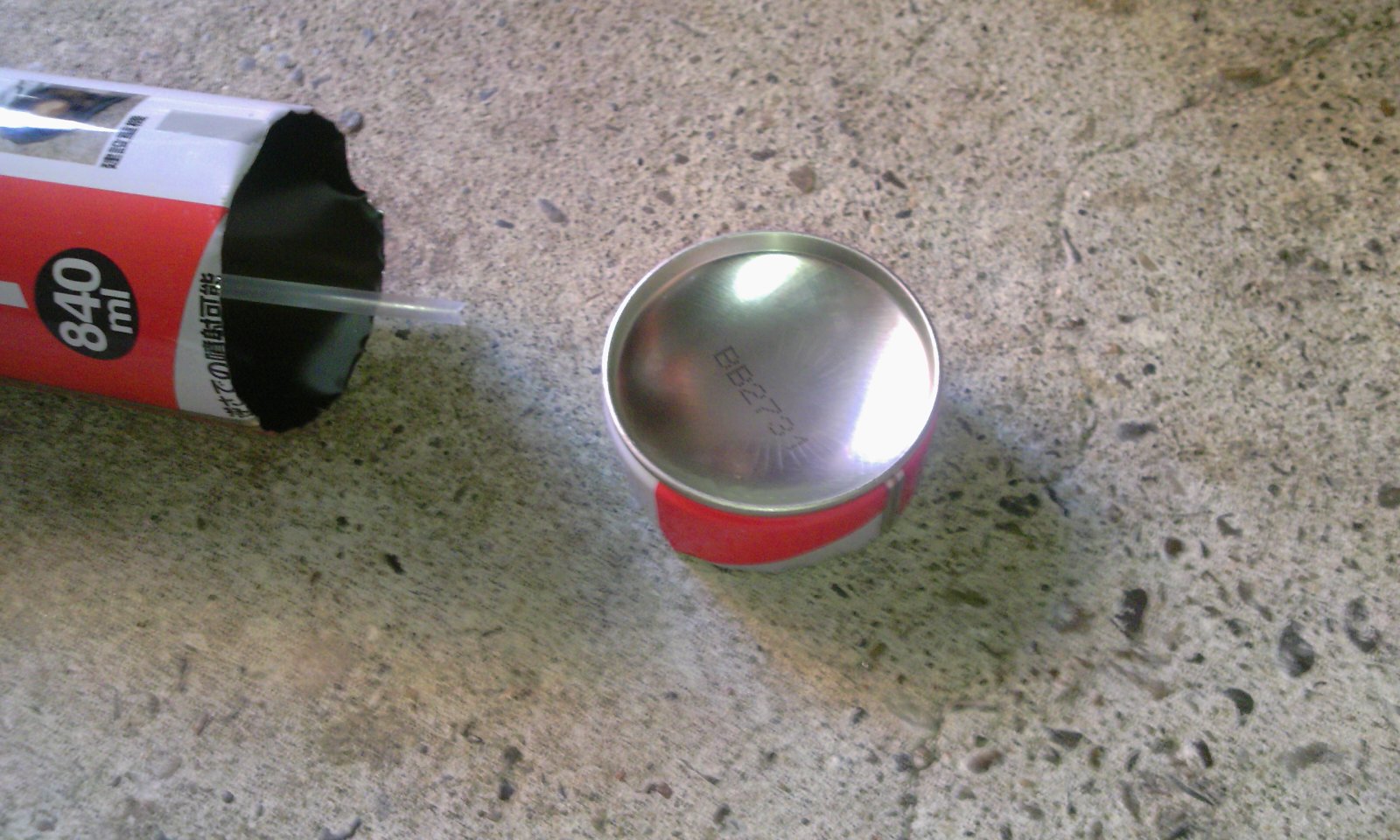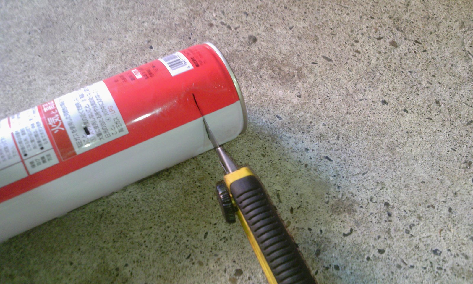 周りを見渡すとたまたま、丁度使い切ったパーツクリーナーの空き缶がひとつ。