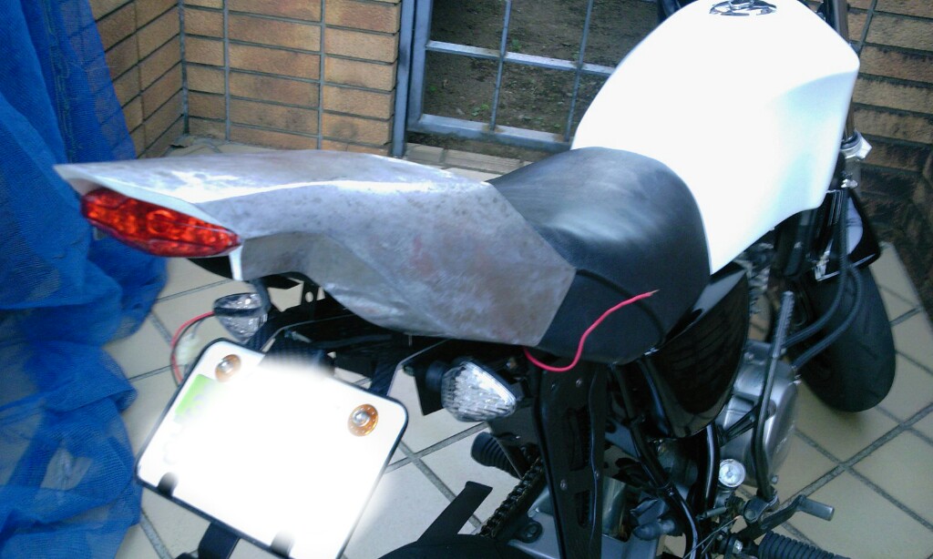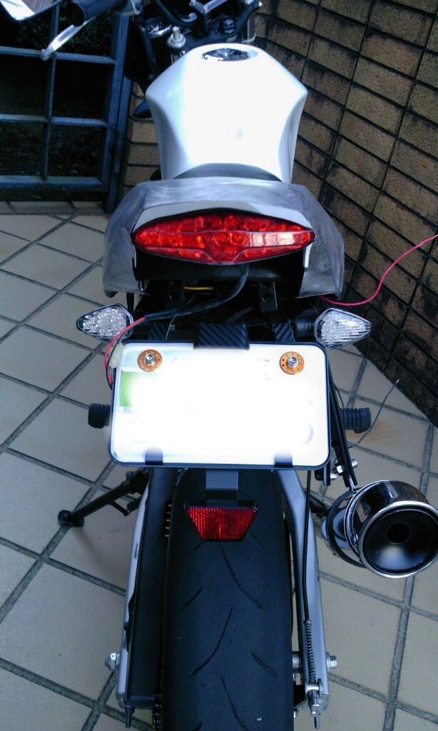 千葉エイパーのオフ会の前日に突貫で作ったフェンダーレス、スタイル的にはあまり好みではないのですが、LEDのストップランプとウィンカーの部品自体は質感も良くてお気に入り。