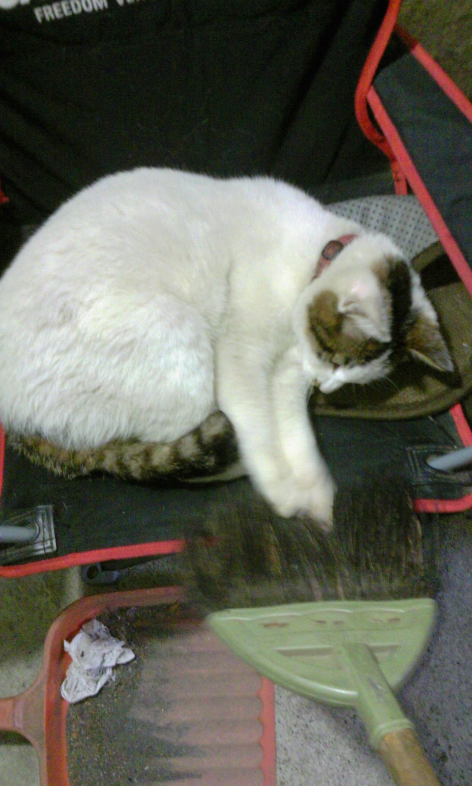 1日あけてガレージに訪れてみるとガレージ猫のライちゃんがお出迎え♪