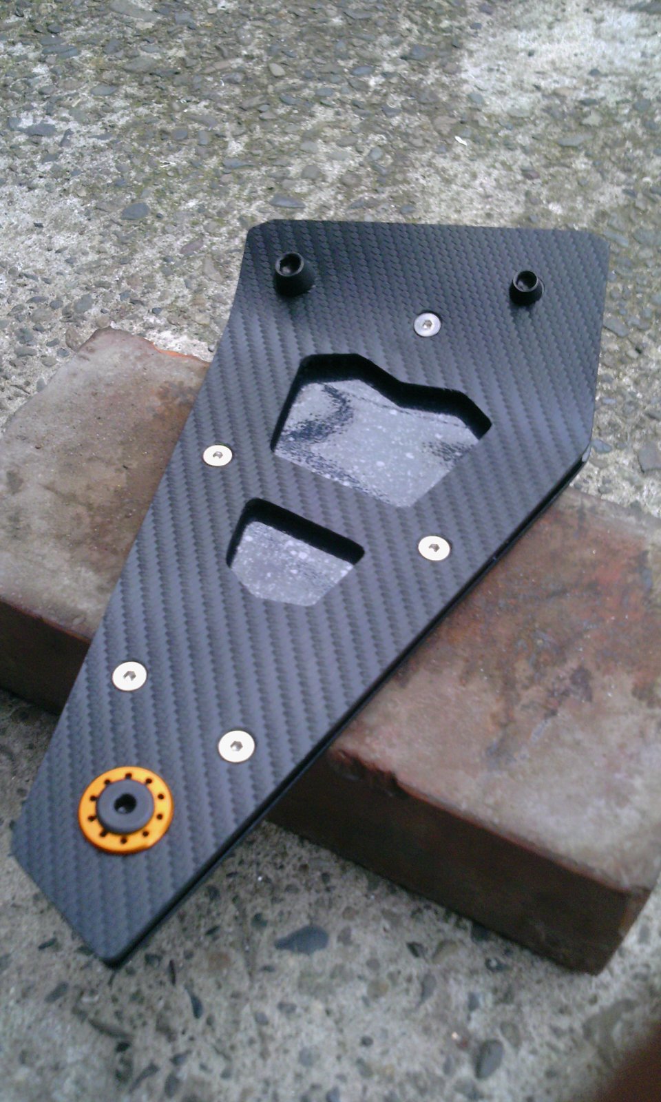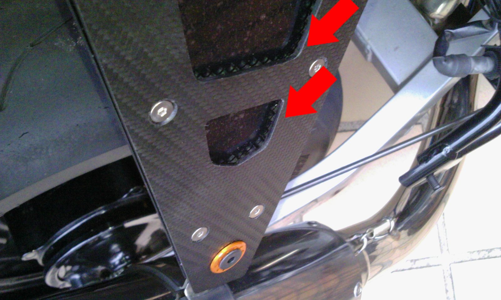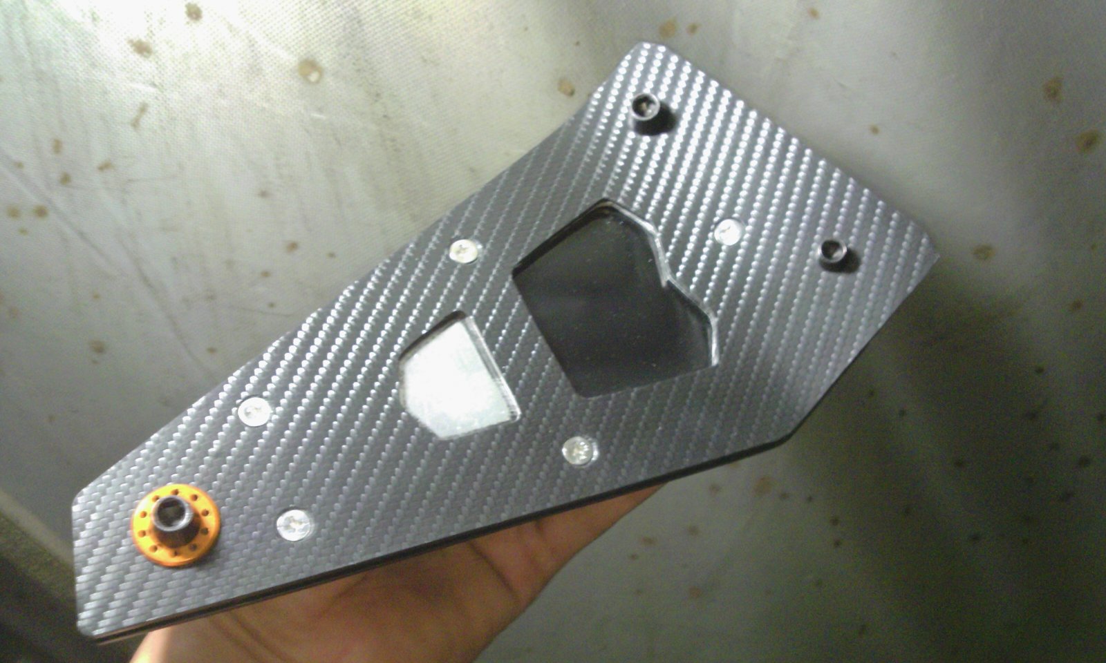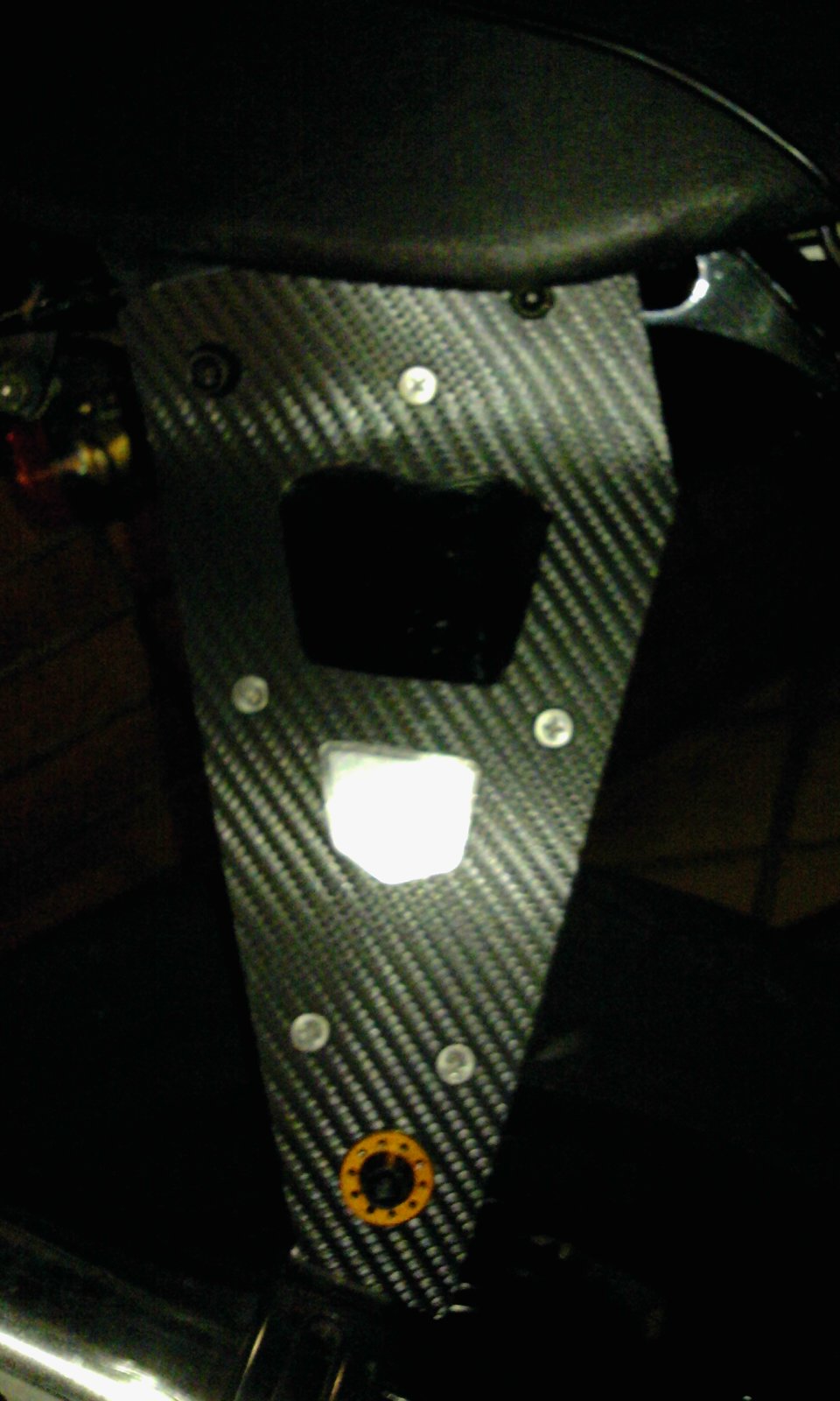 その代わりに、表側はダミーカーボンシールを貼り、ボルト座面下のシールはカットして剥がしました。