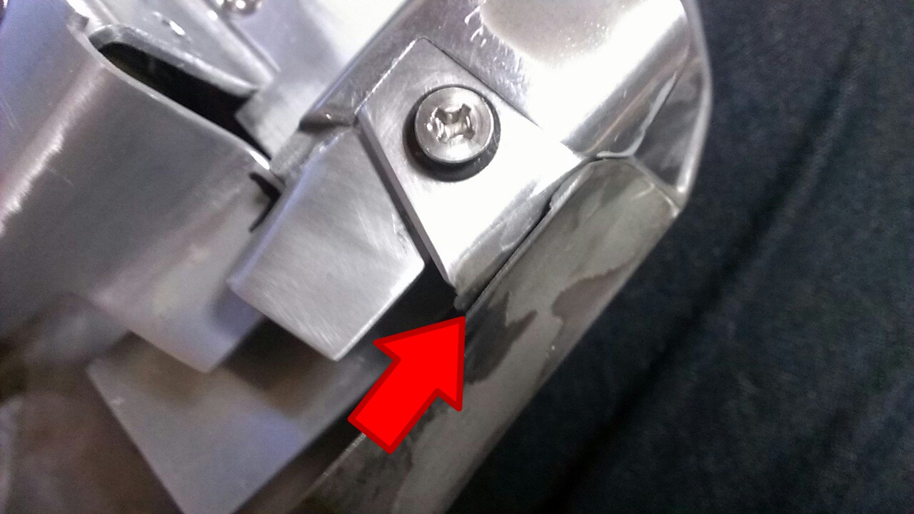 ニーグリップも出来て、フィット感が良いから気にいってますが、約75mmほど後ろに長い。