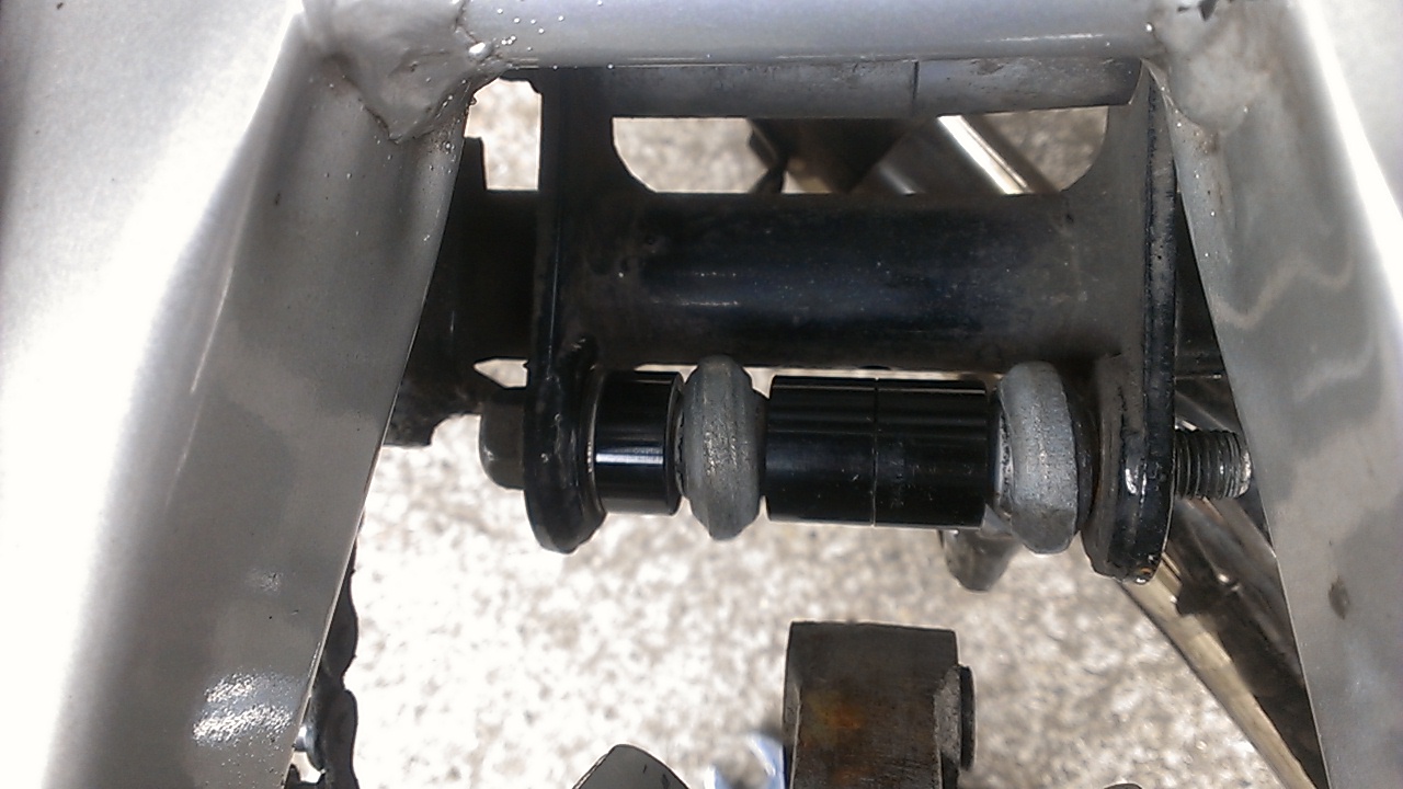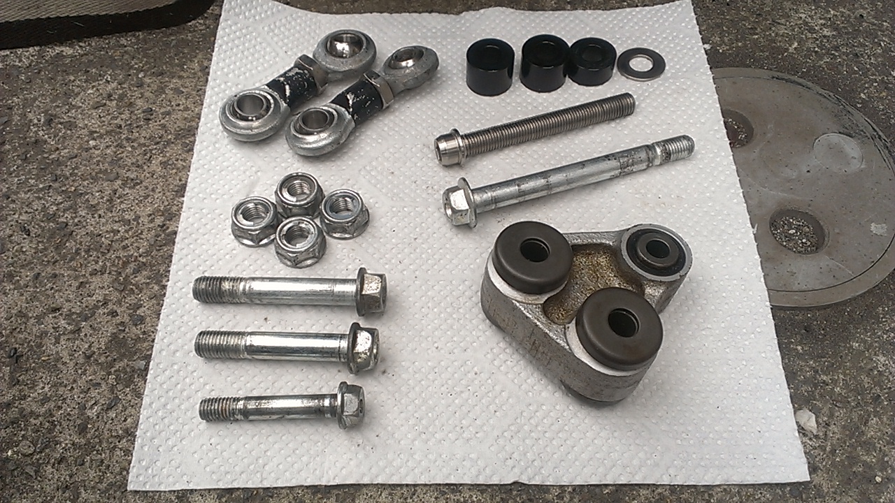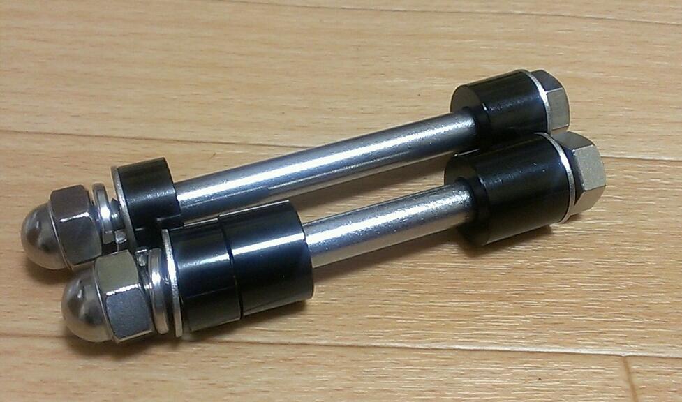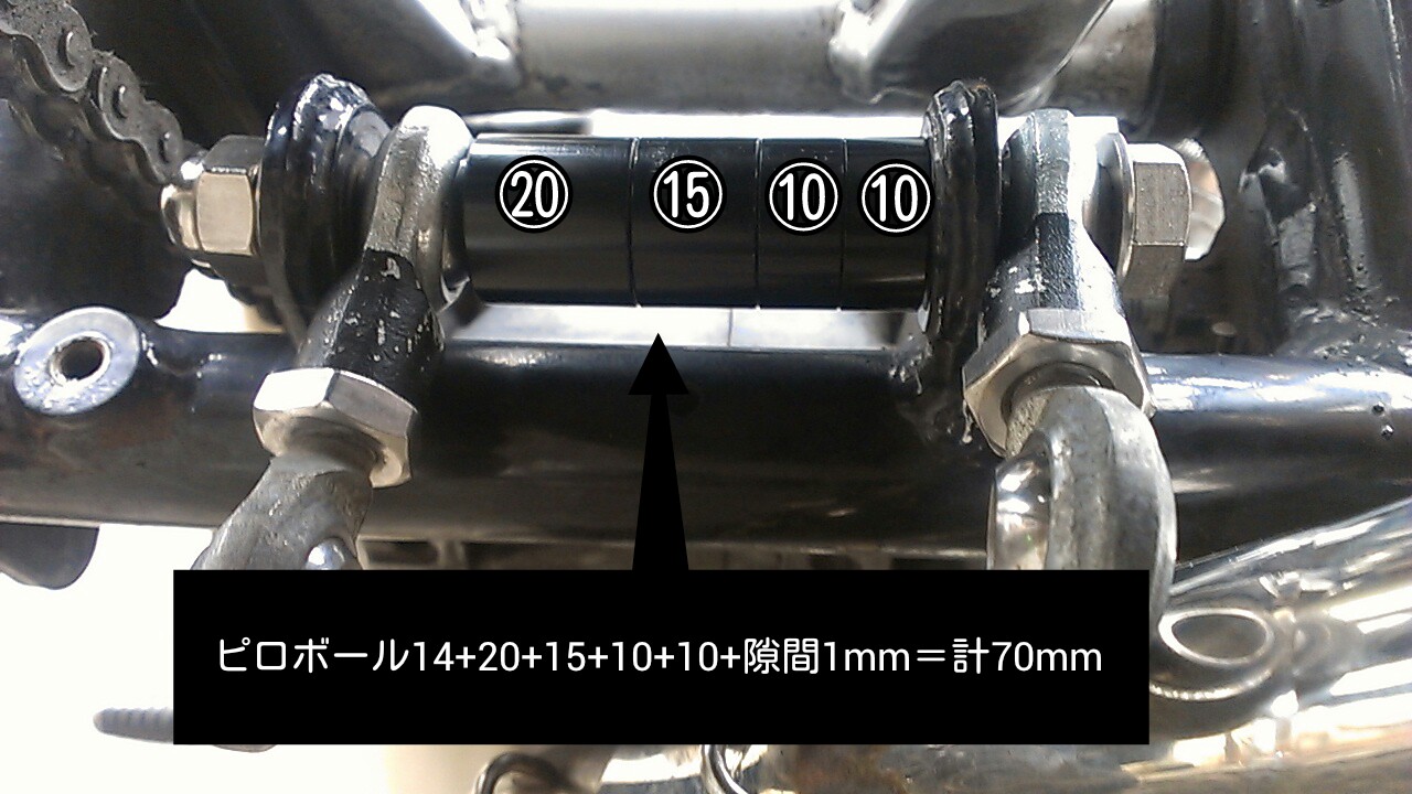 ピロリンクロッドの片側がフレームから出ている取付けステーの外に移動するので、ボルト類は新調しました。