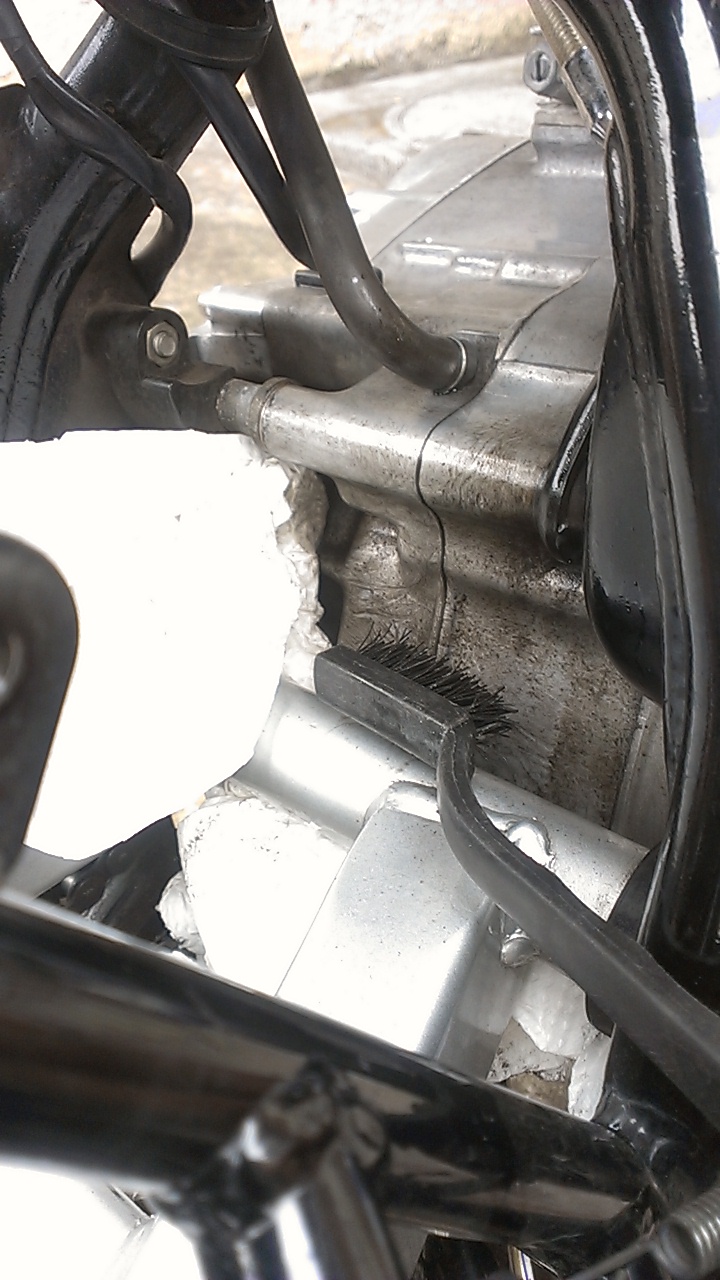 いつもは手抜きでカバーもしてないのでエンジンのクランクケースも少し粉が吹いてきたような感じになってました。