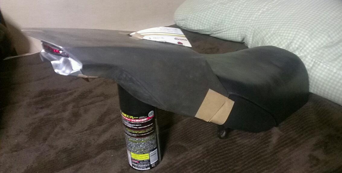 シートに板金テールカウルをはめるとシート座面の高さとテールカウルの天板高さにあまり違いがないのが見る角度によって格好良くないと感じていました。