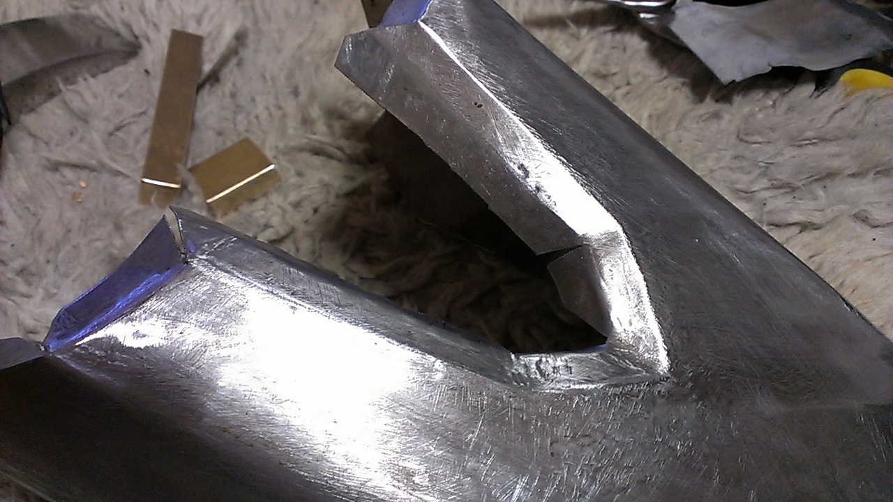 追加ディテールの切り込みと叩きが終わらないと、裏側のカウルを固定する為のレールとの接合ベースプレートの位置が決まりませんでしたが、これでやっとそちらにも手が付く工程になってきました。
