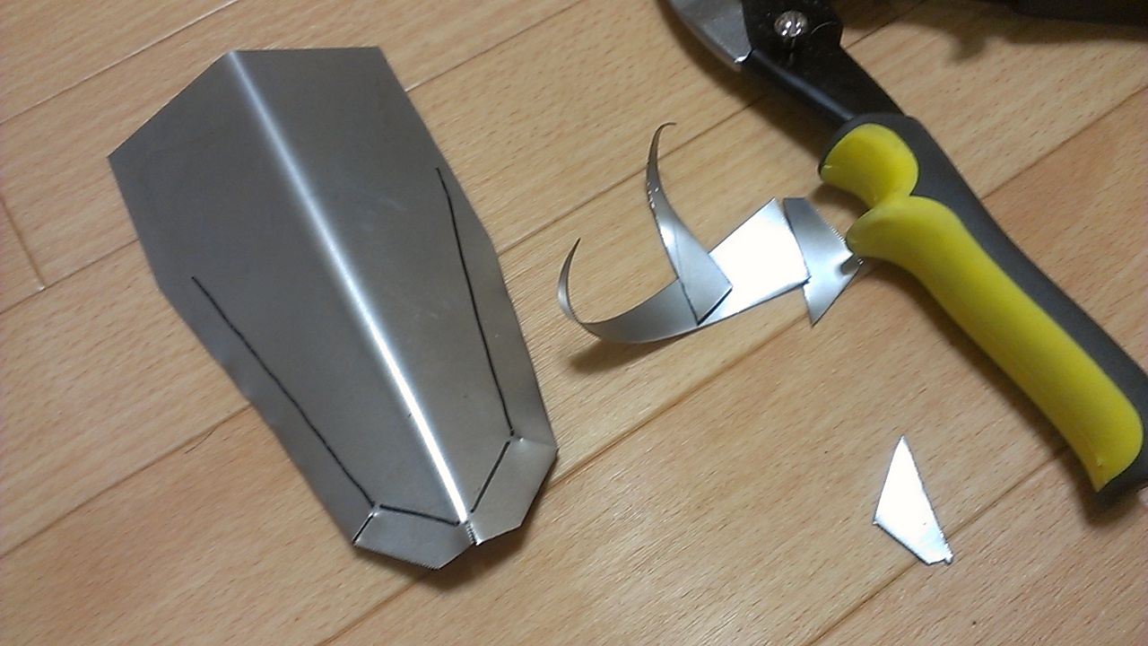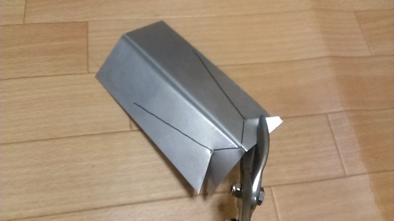 おっと、その前に曲げた下側の縁を左右均等で切り落としてと。