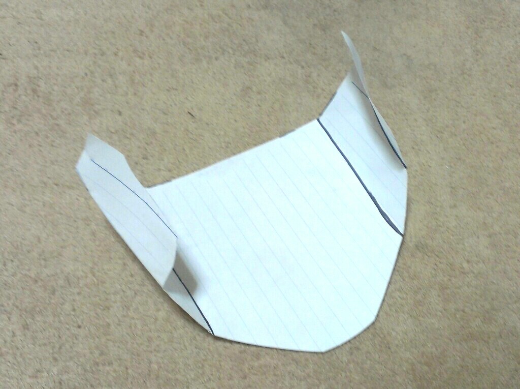縁をハサミでジョキジョキと切り落とした後、曲がっているラインをマジックで写して完成。