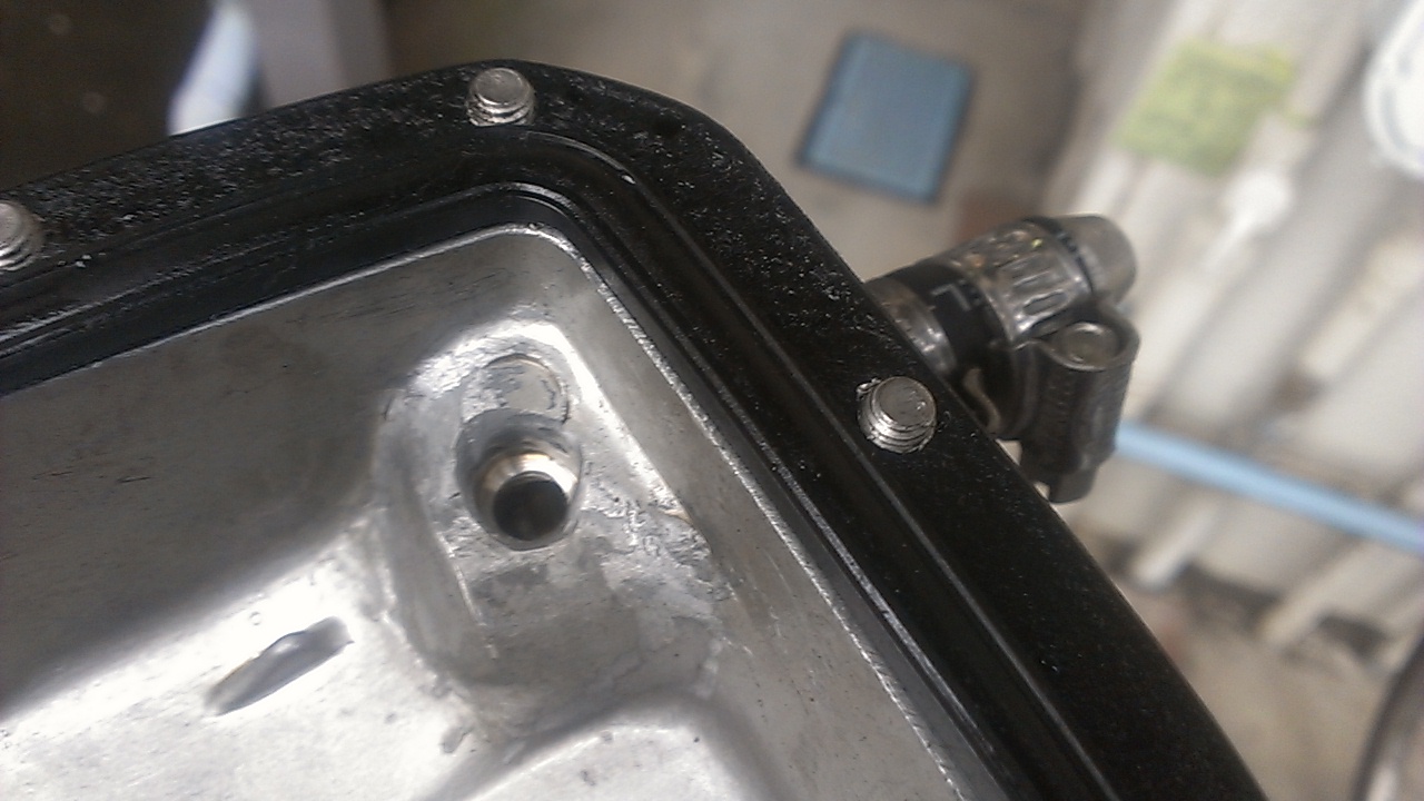 まだ、キャッチタンクを買ってないので接続していませんが、ブローバイホース取り出し口のヘッドカバー内側はこんなんなってますよ〜と。