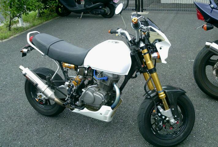 シフトアップ製ヘッドシリンダーにZEROボーグマフラー、MJN24装着車。