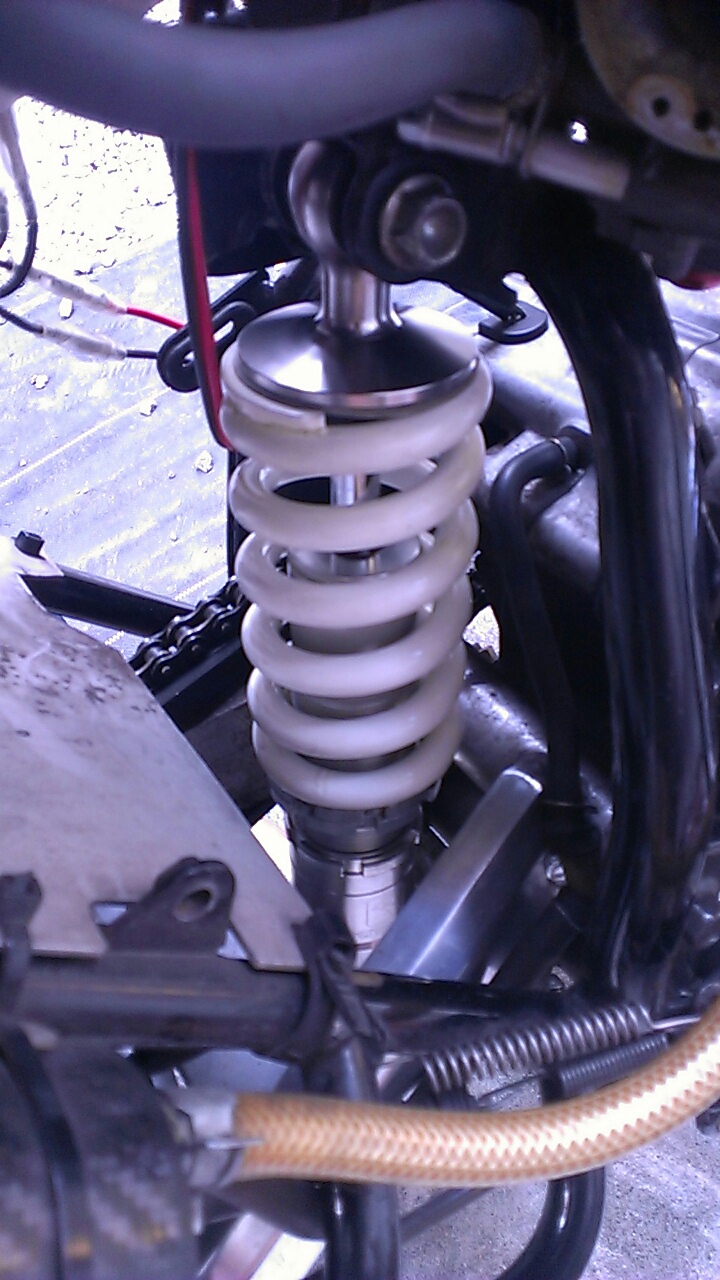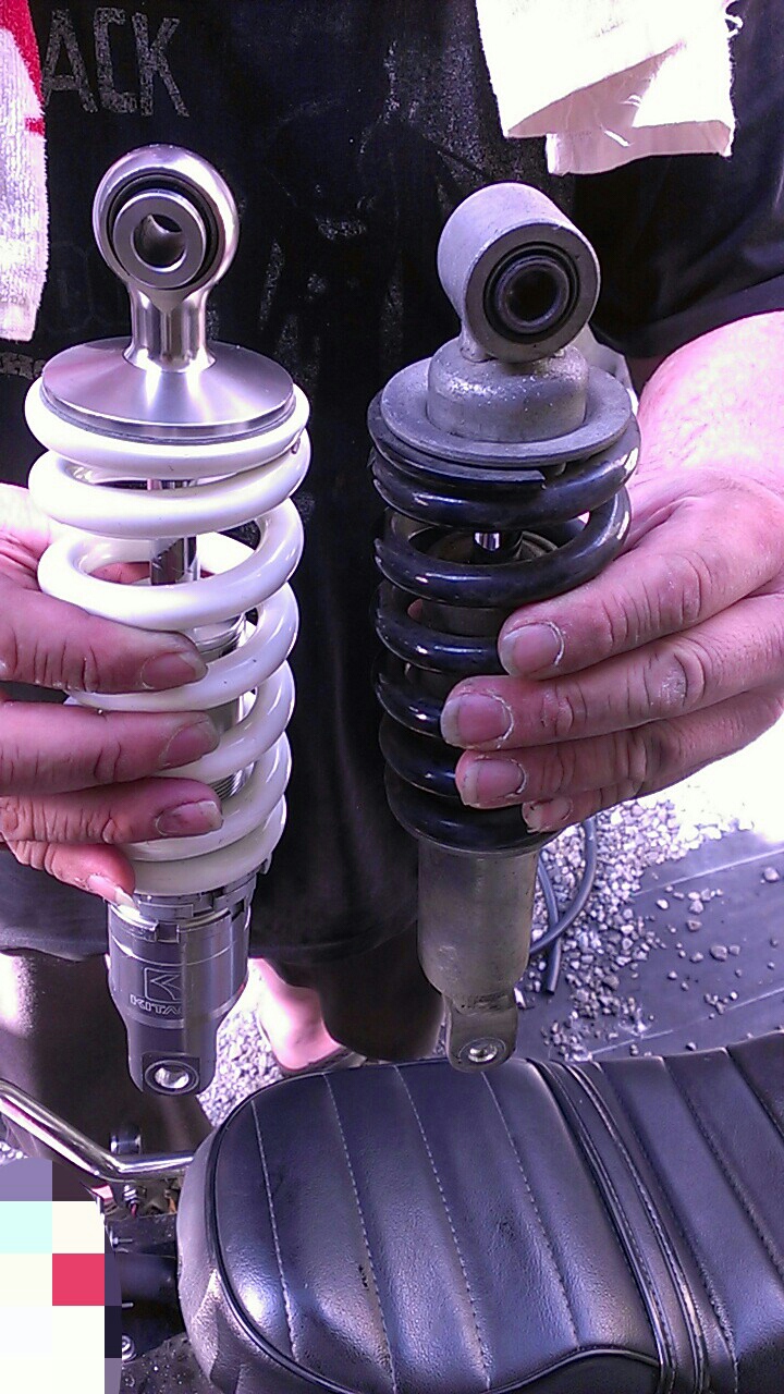 跨って見たら、純正と同じ自然長で取り付けたのに、あれれ?車高がなんだか凄く下がってしまって問題発生したり。