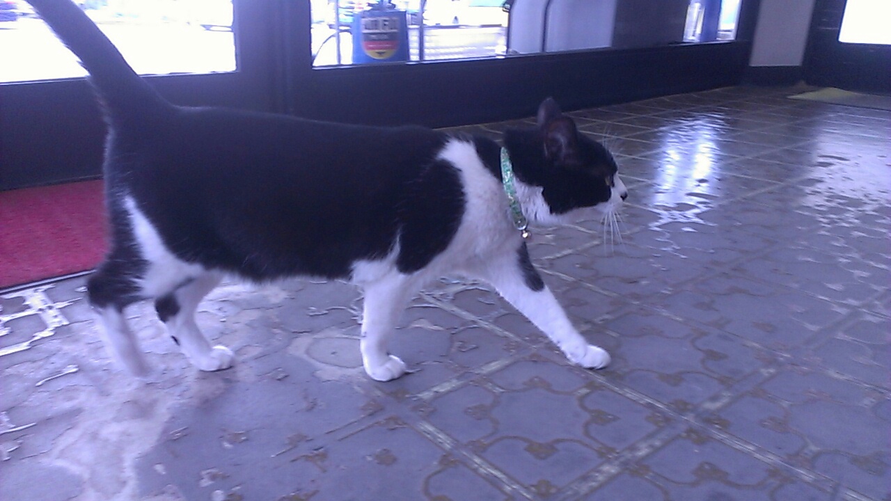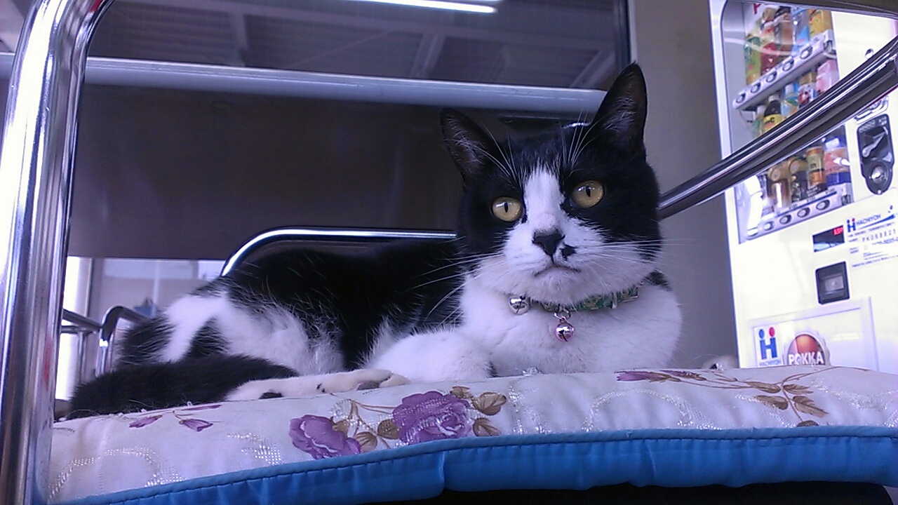 記憶が間違ってなけりゃ、この先にスタンドあったなーと寄ってみると、なんと看板猫ちゃんが!