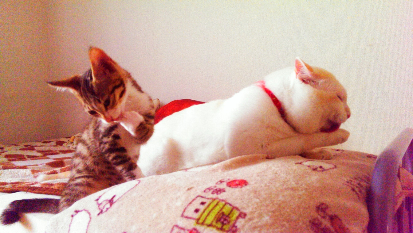 一緒にご飯食べたら毛づくろいまで一緒ですか。