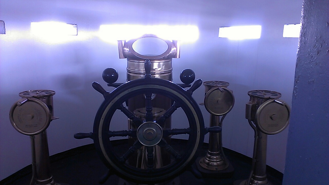 上の操舵室のすぐ下の階層、真下にあり、35cm厚の装甲に守られています。